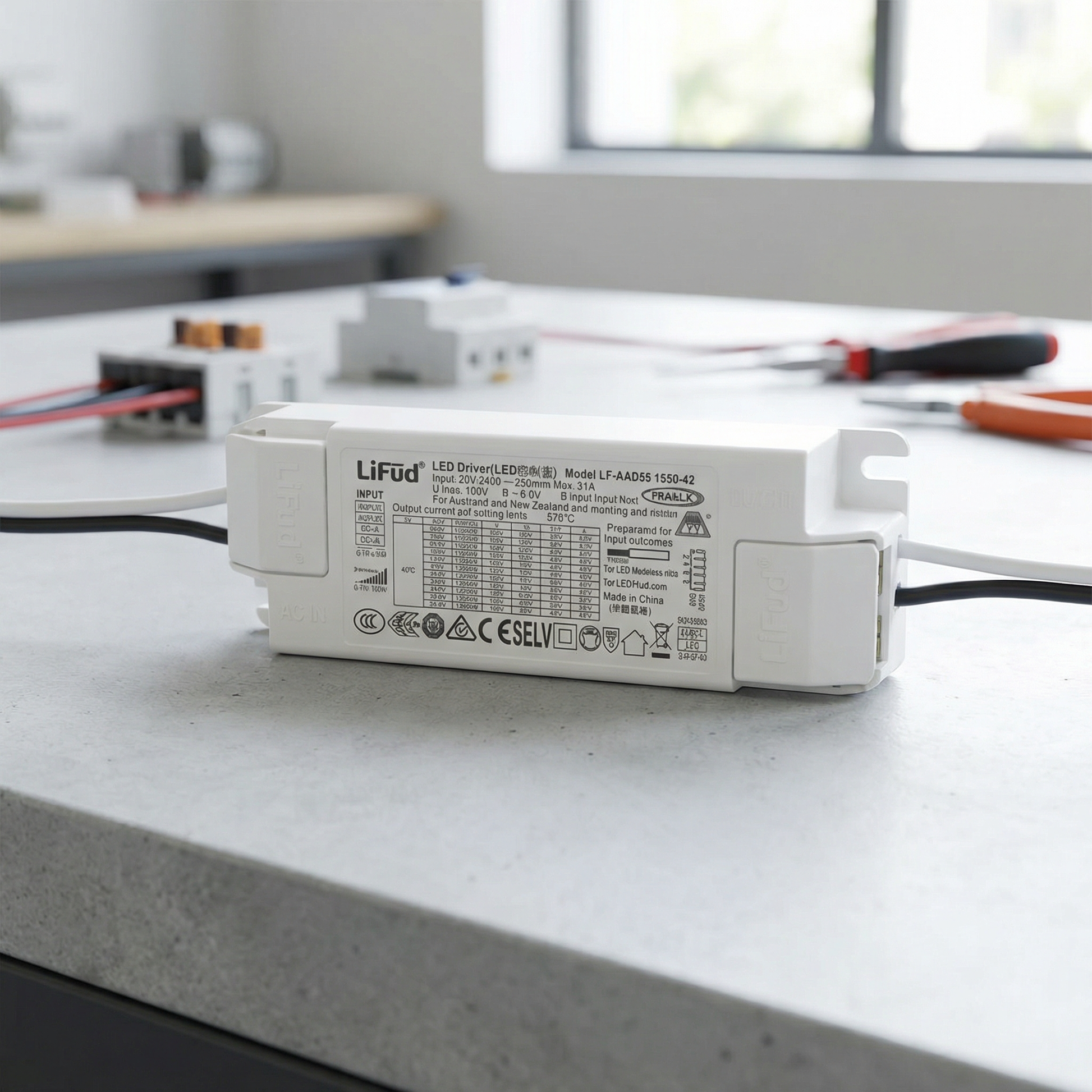 Pilotage DALI/PUSH PRO pour gradation précise | Puissance 40 W pour alimenter des luminaires LED exigeants | Entrée 200–240 V pour compatibilité réseau étendue | Sortie 9–42 V pour une large plage de modules LED | Marque LIFUD, fiabilité reconnue en drivers professionnels