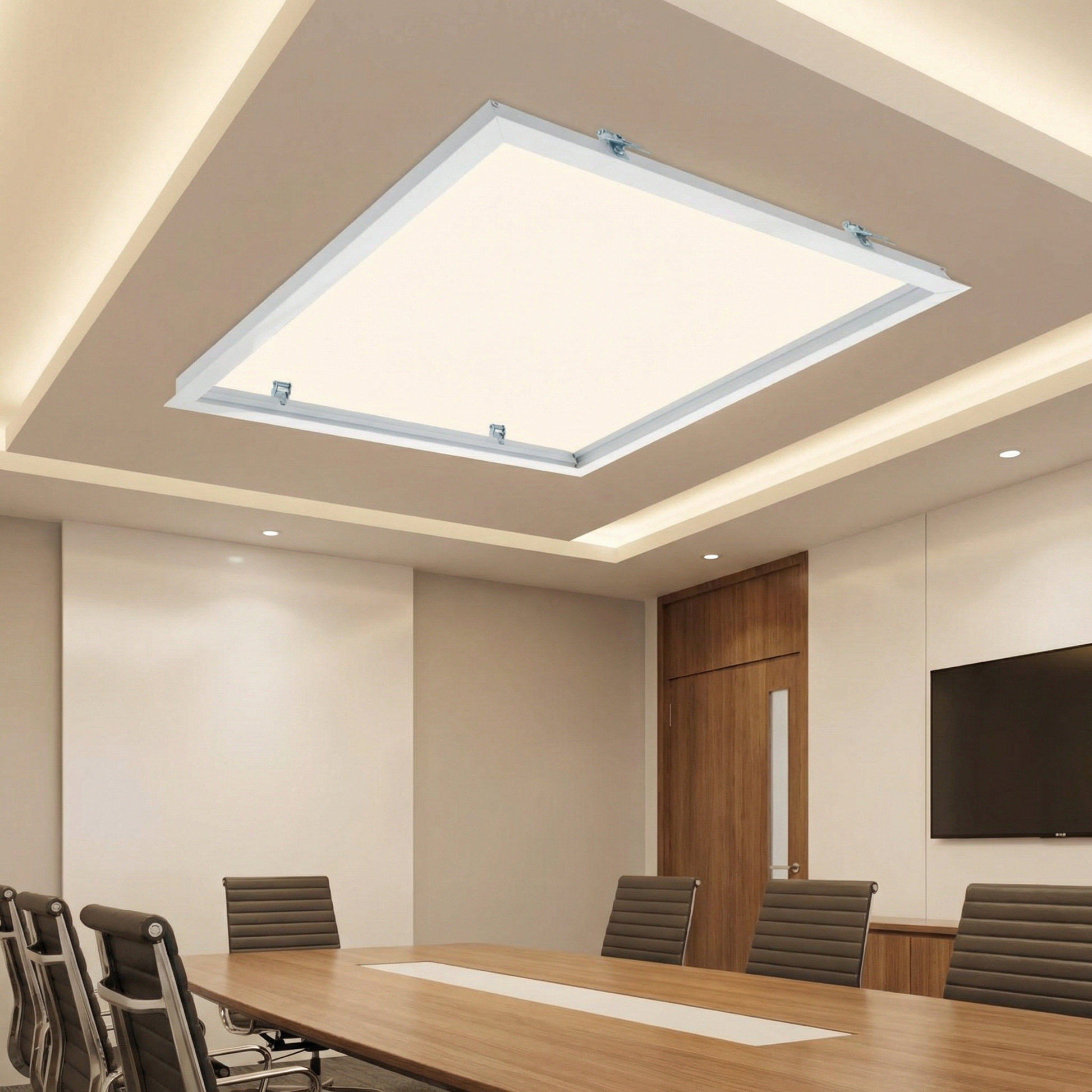 Compatibilité universelle : Format conçu pour accueillir n'importe quelle dalle LED 60x60 standard (dimensions réelles 59,5 x 59,5 cm).