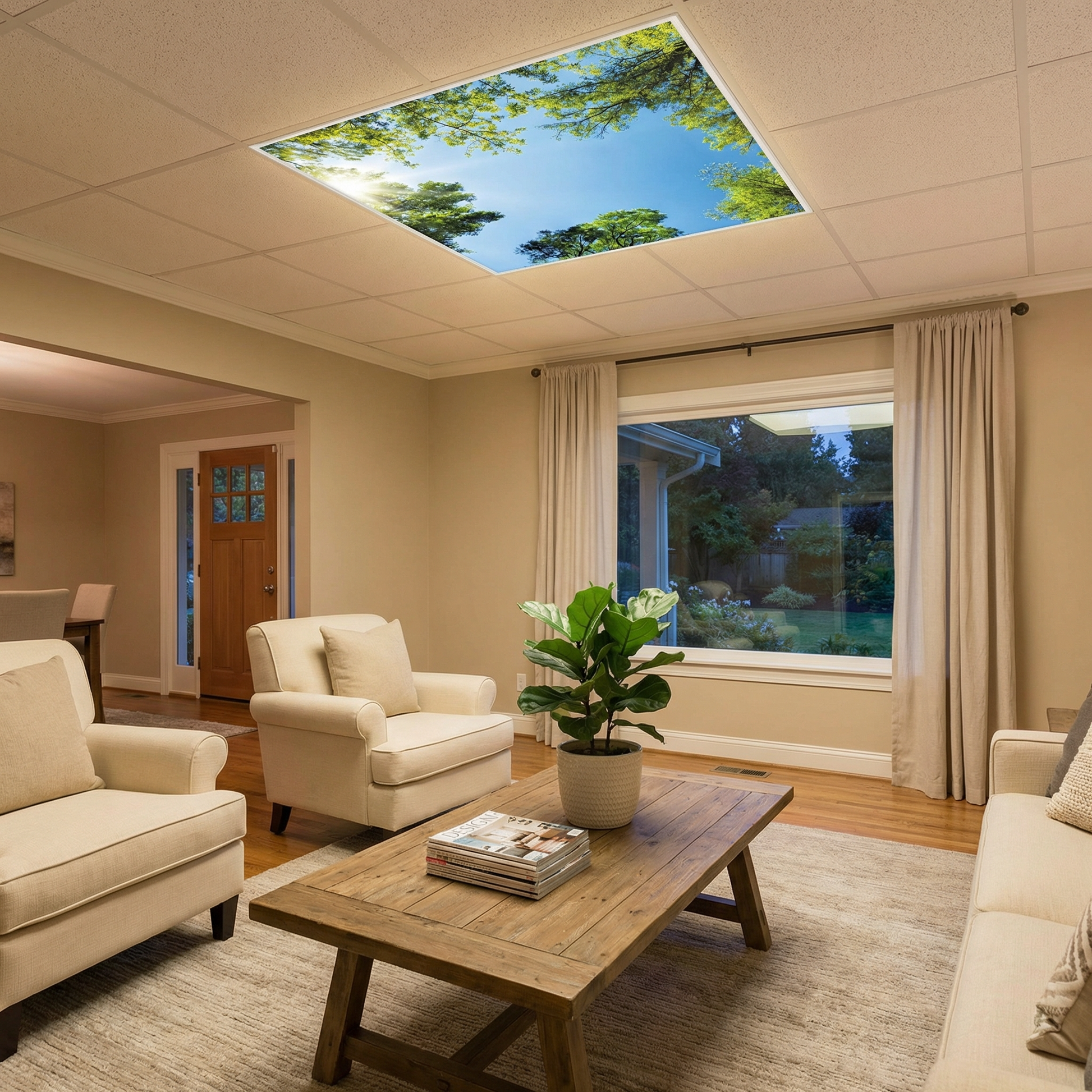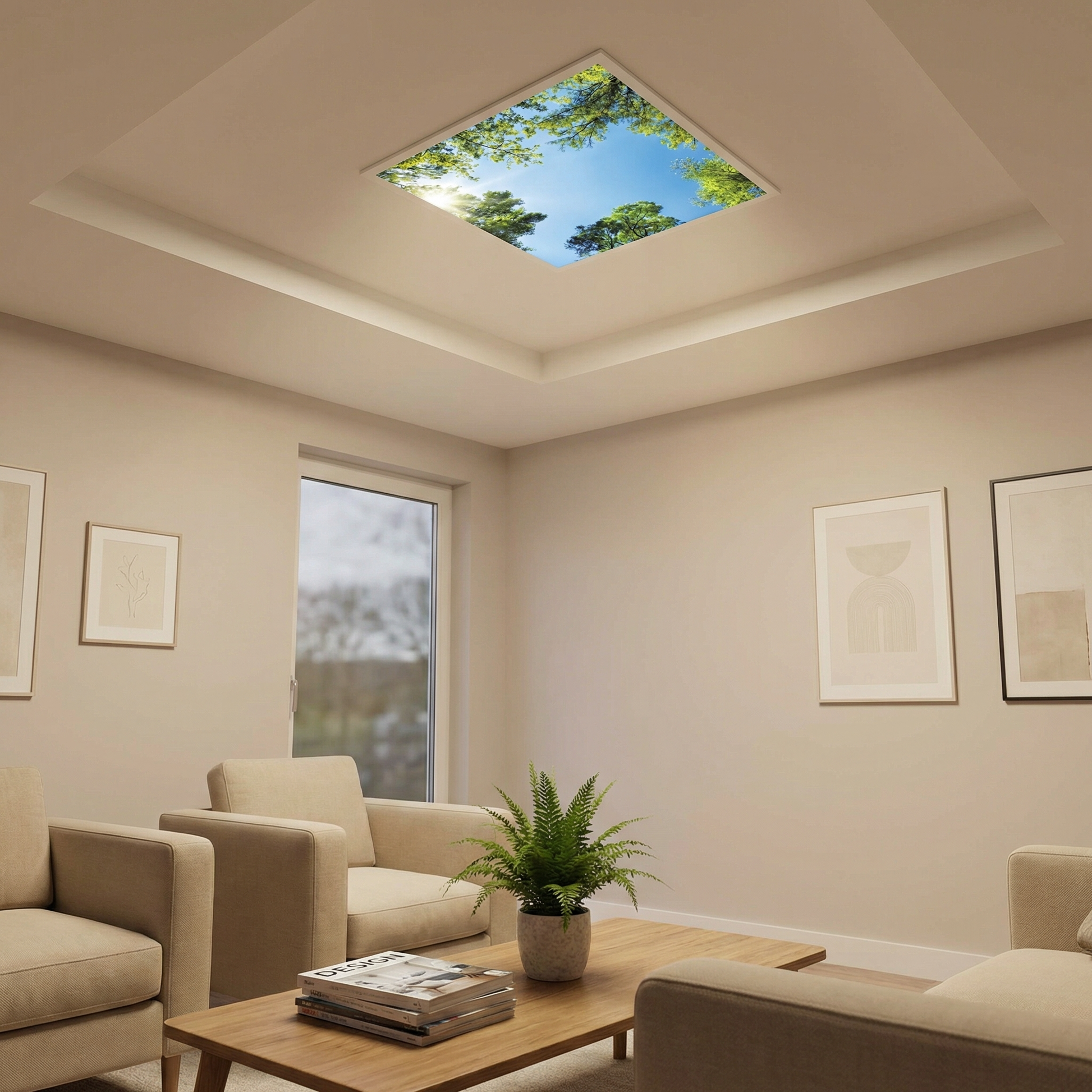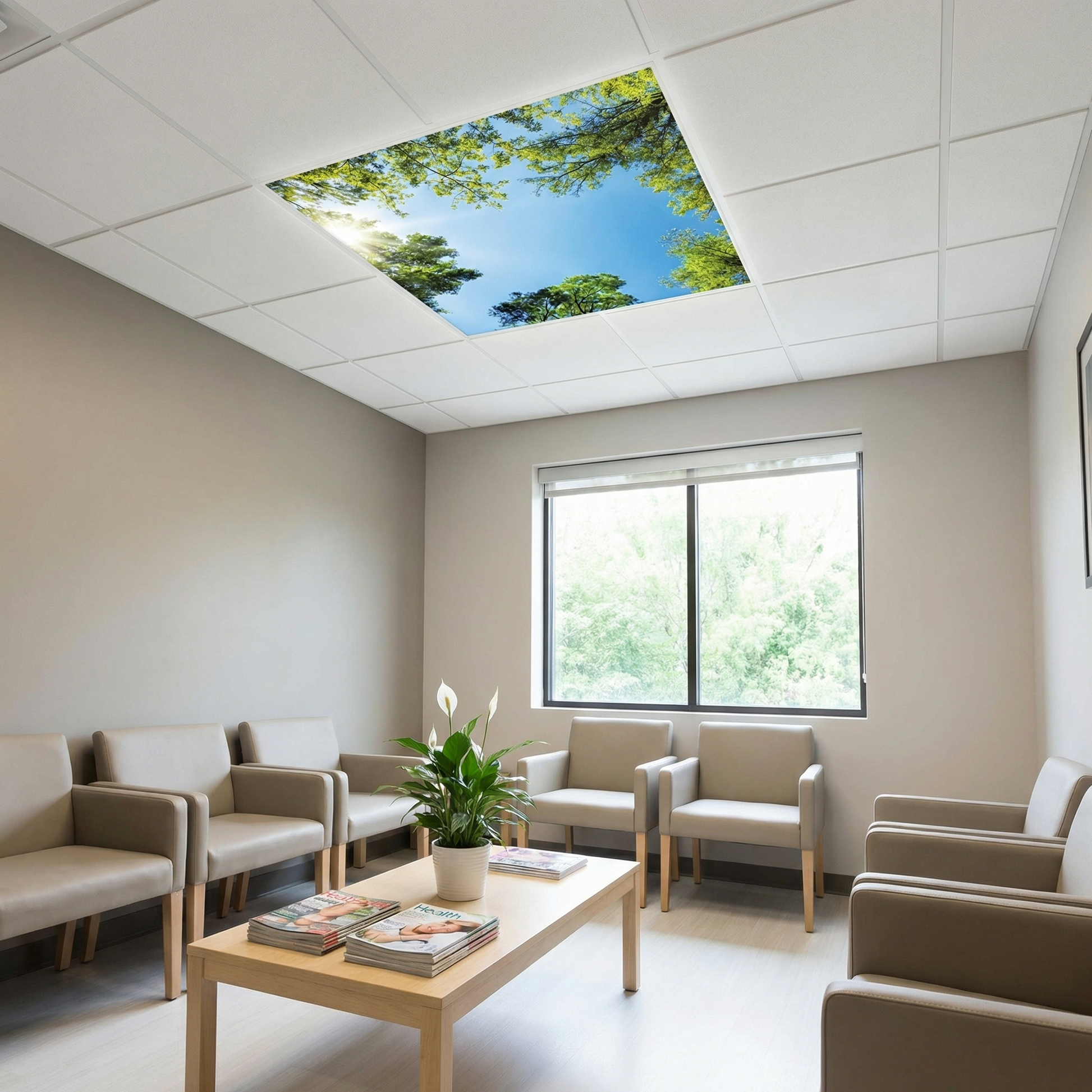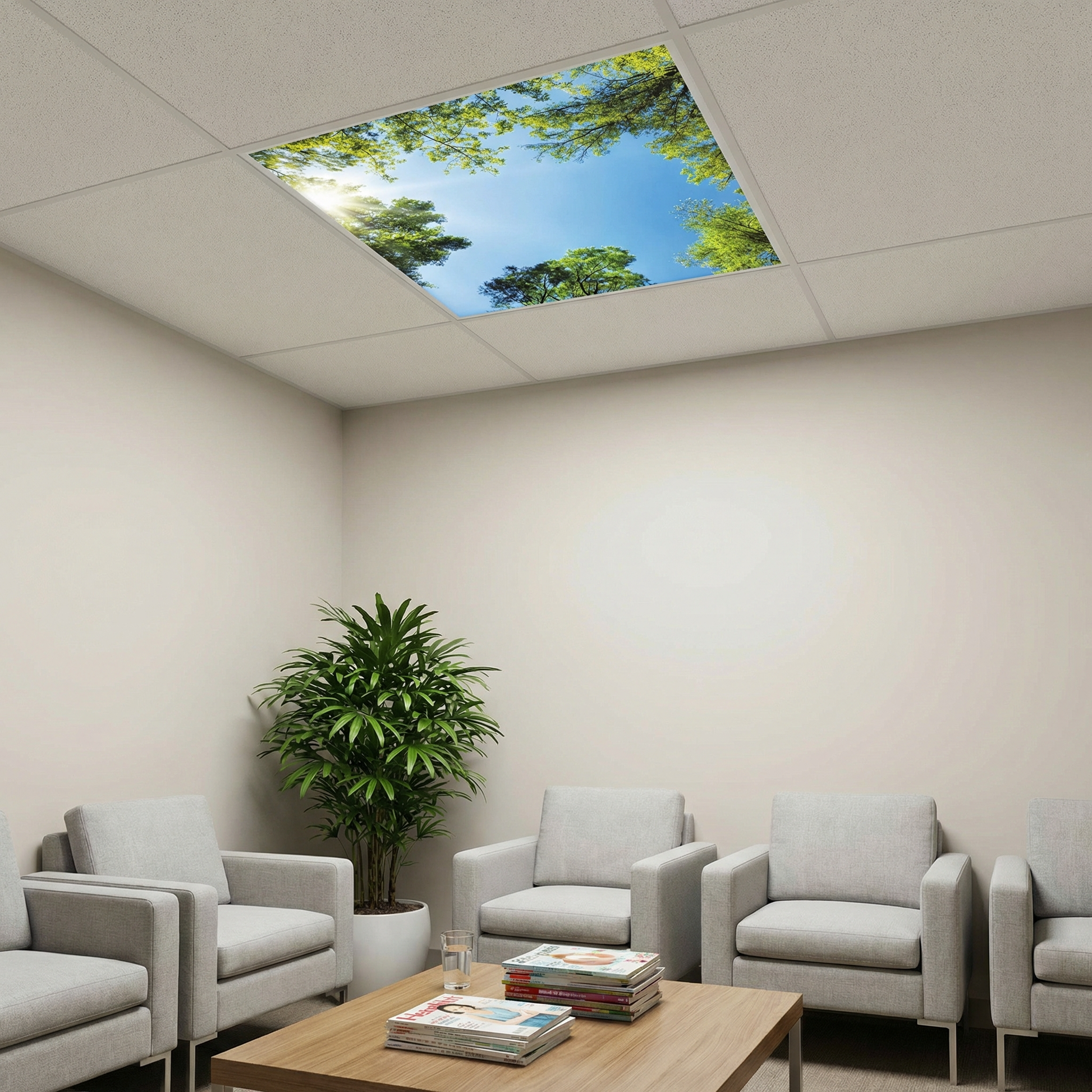 Apportez une touche de nature et de liberté à votre intérieur avec cette dalles LED imprimée. Son visuel représentant un ciel bleu lumineux à travers les feuillages d’arbres apporte une sensation d’ouverture et de bien-être. Idéale pour créer une ambiance apaisante et immersive, elle s’intègre parfaitement aux espaces de travail, salles d’attente ou intérieurs modernes. Impression haute qualité pour des couleurs éclatantes et un rendu ultra-réaliste.