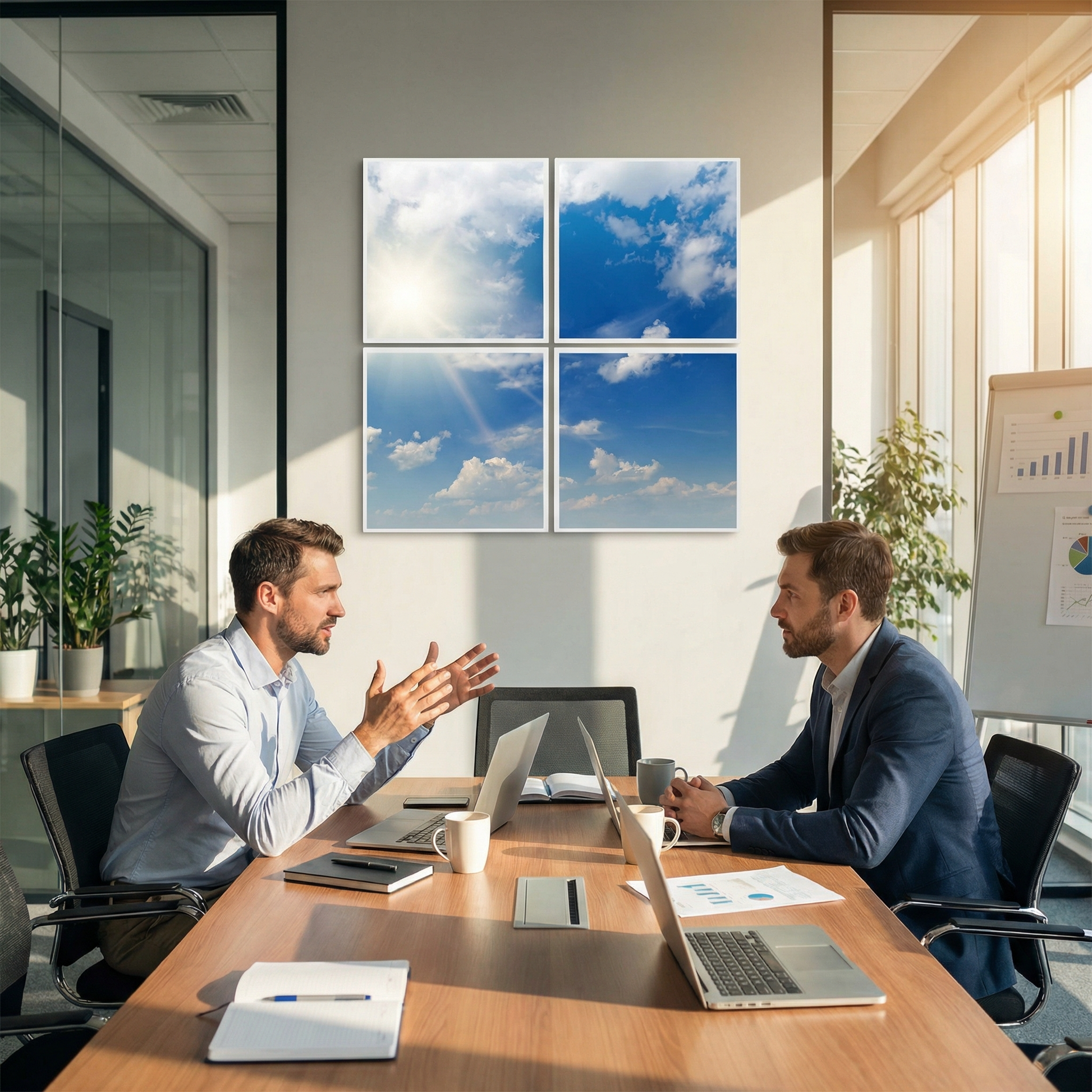 Pack 4 Dalles LED 60x60cm - Puits de Lumière XXL - Éclairage en Trompe-l'œil - "Ciel Très Nuageux"