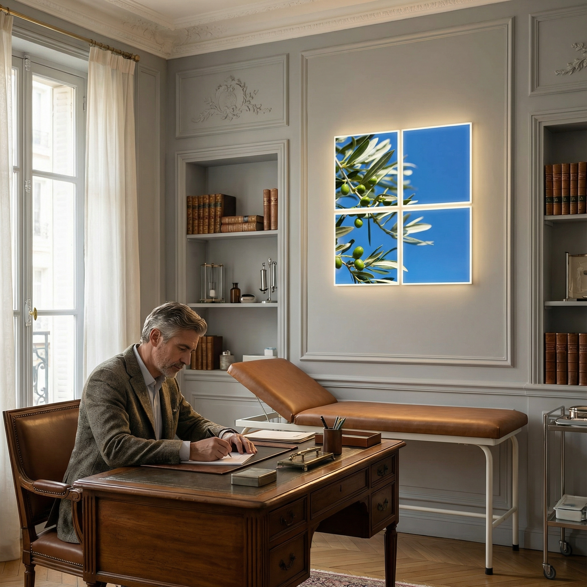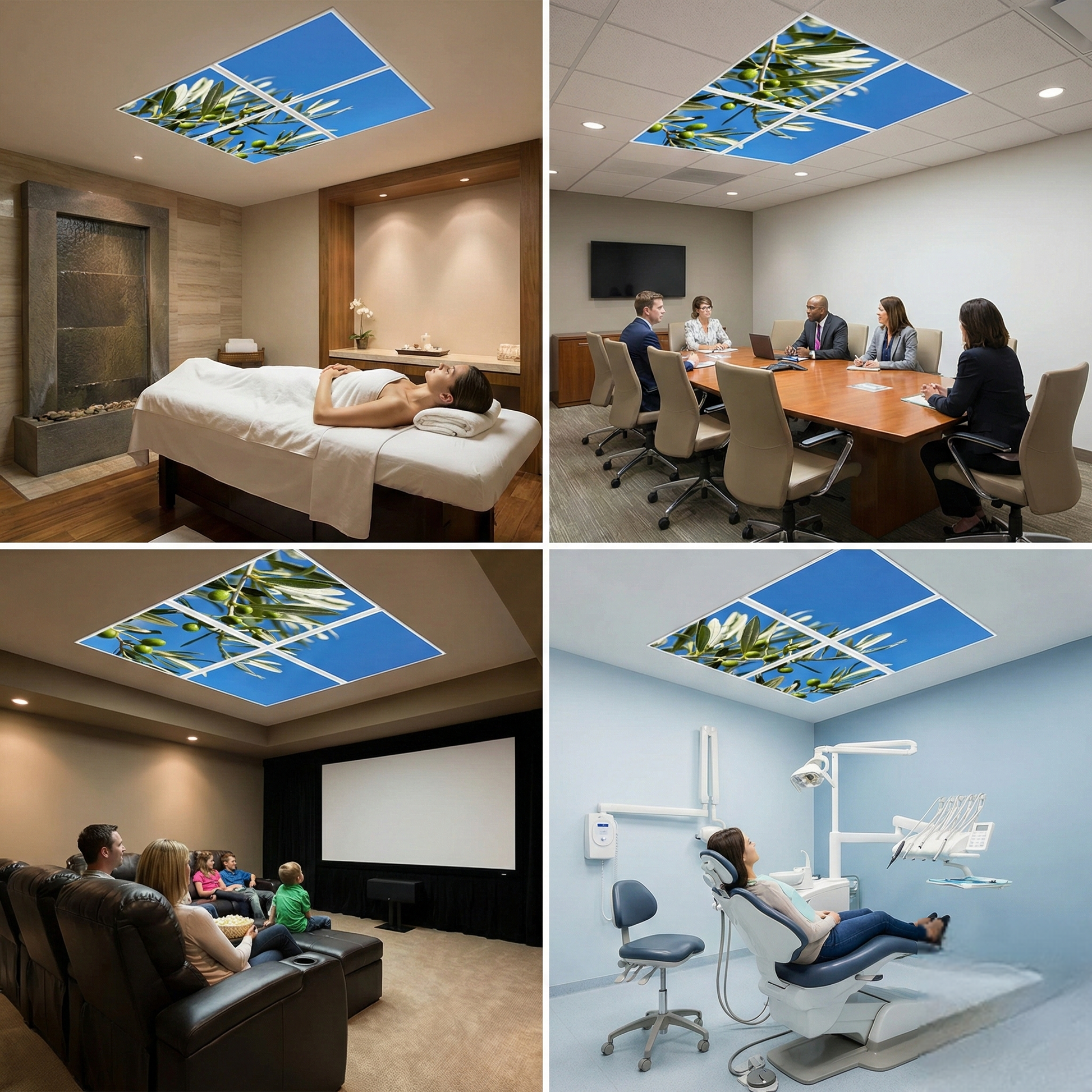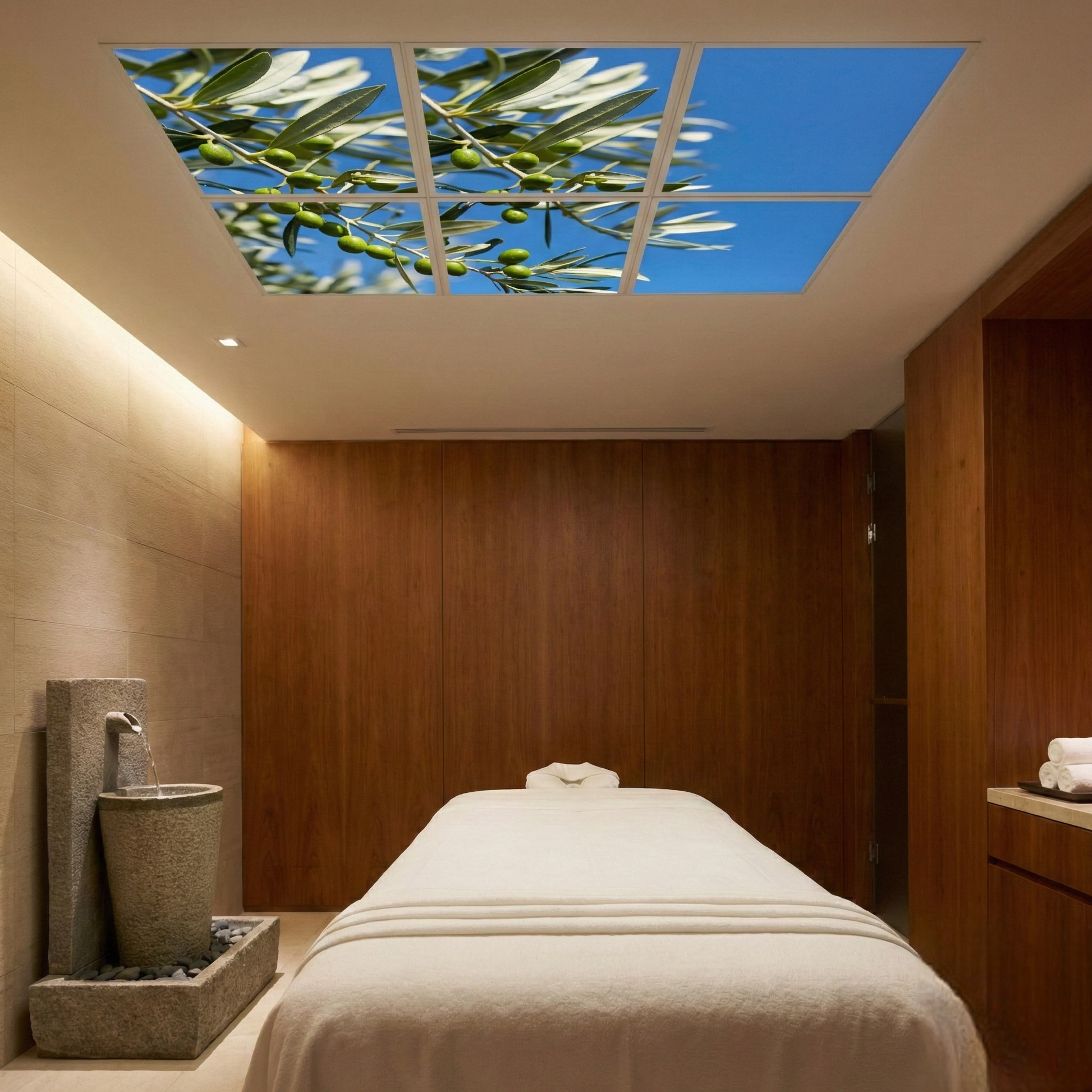 Pack 4 Dalles LED 60x60cm - Puits de Lumière XXL - Éclairage en Trompe-l'œil - "Parfum d'Oliviers"