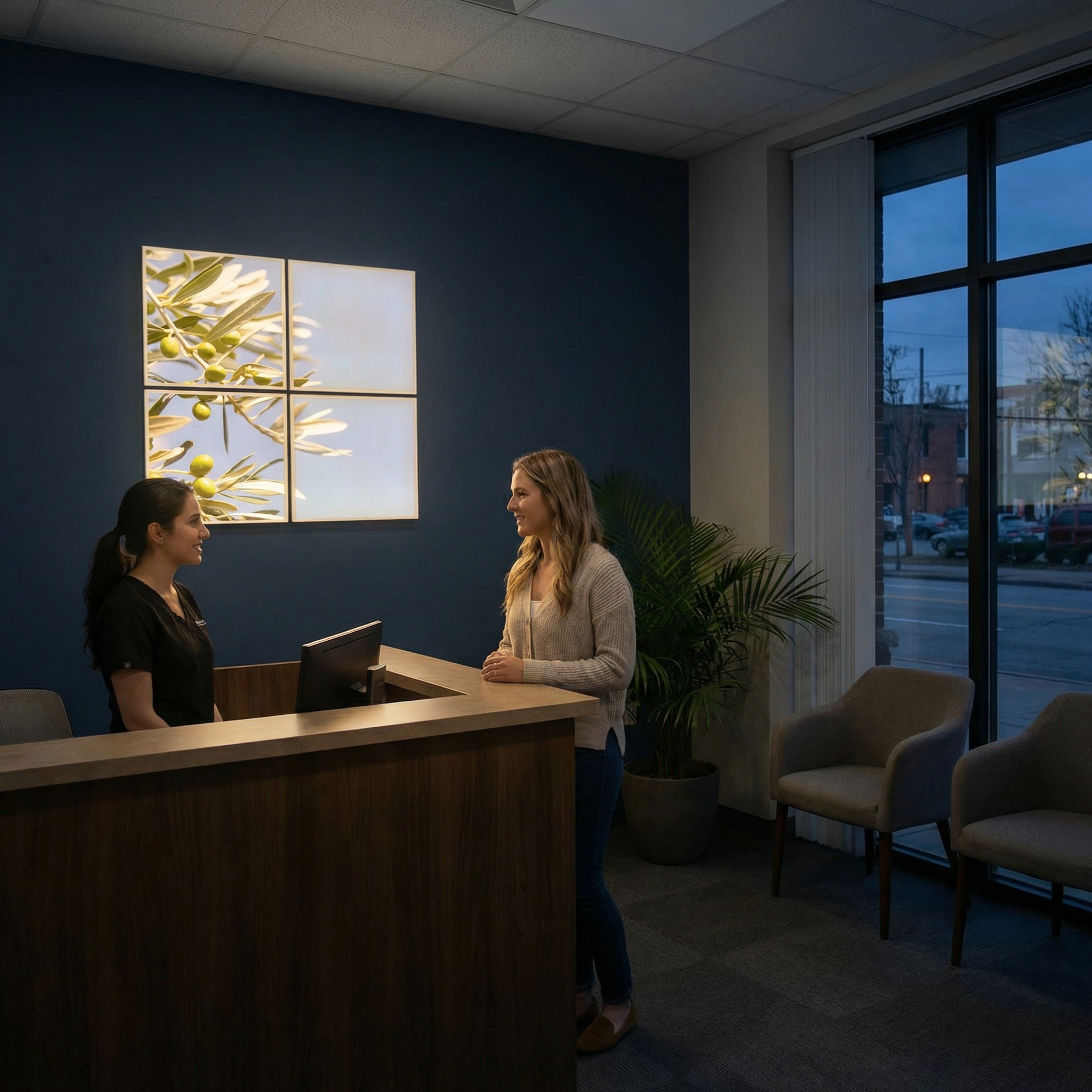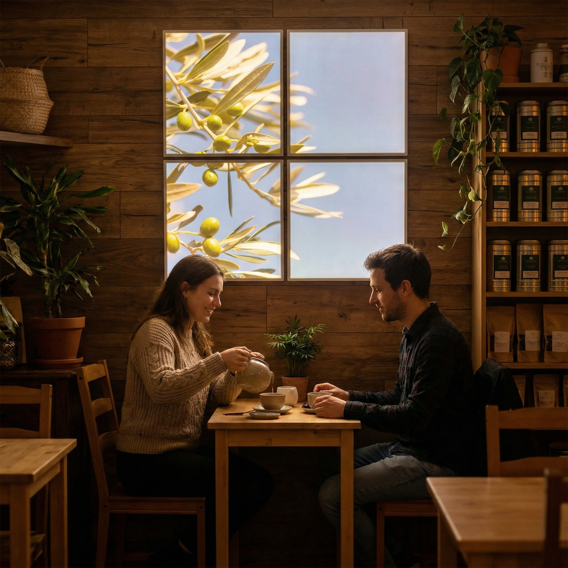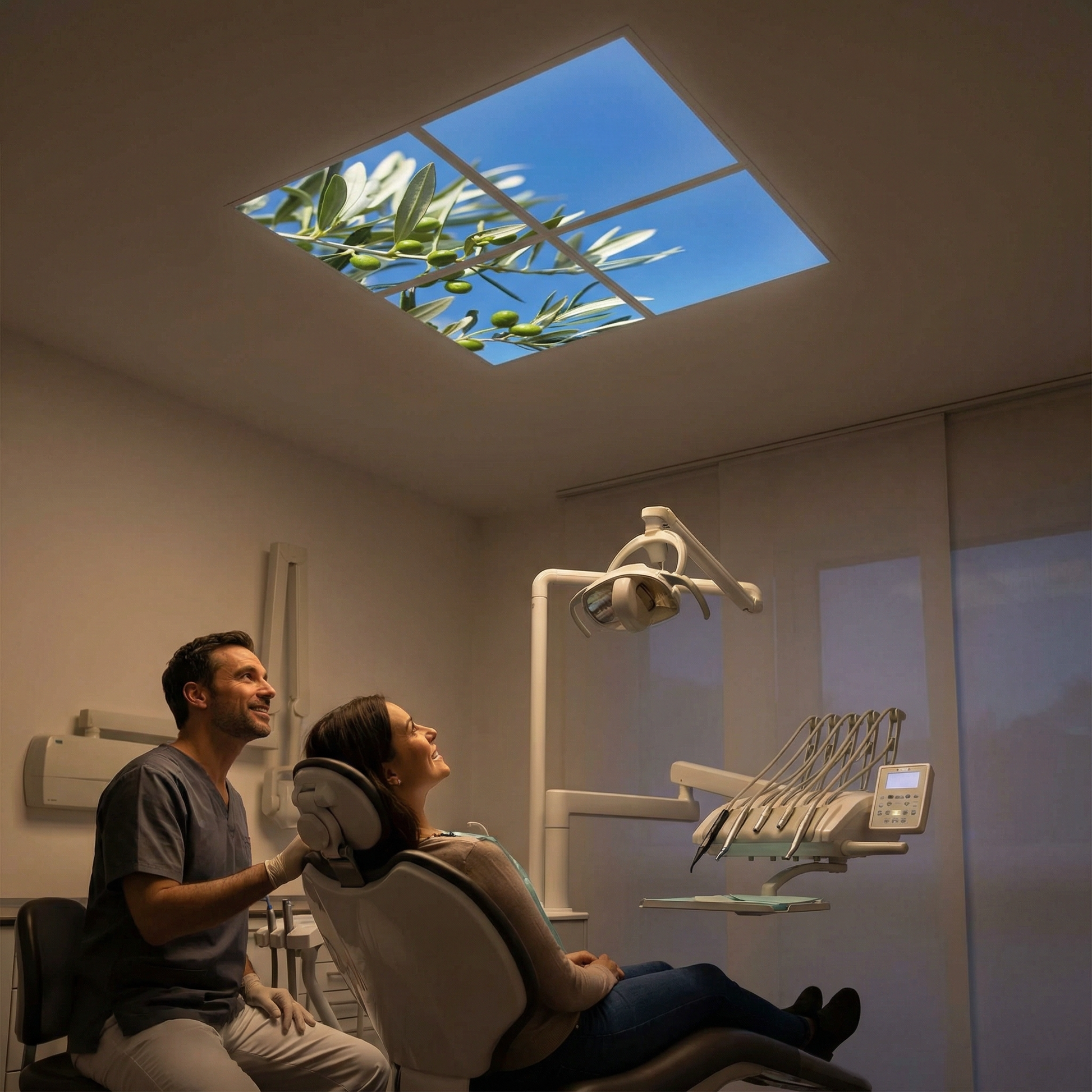 Pack 4 Dalles LED 60x60cm - Puits de Lumière XXL - Éclairage en Trompe-l'œil - "Parfum d'Oliviers"