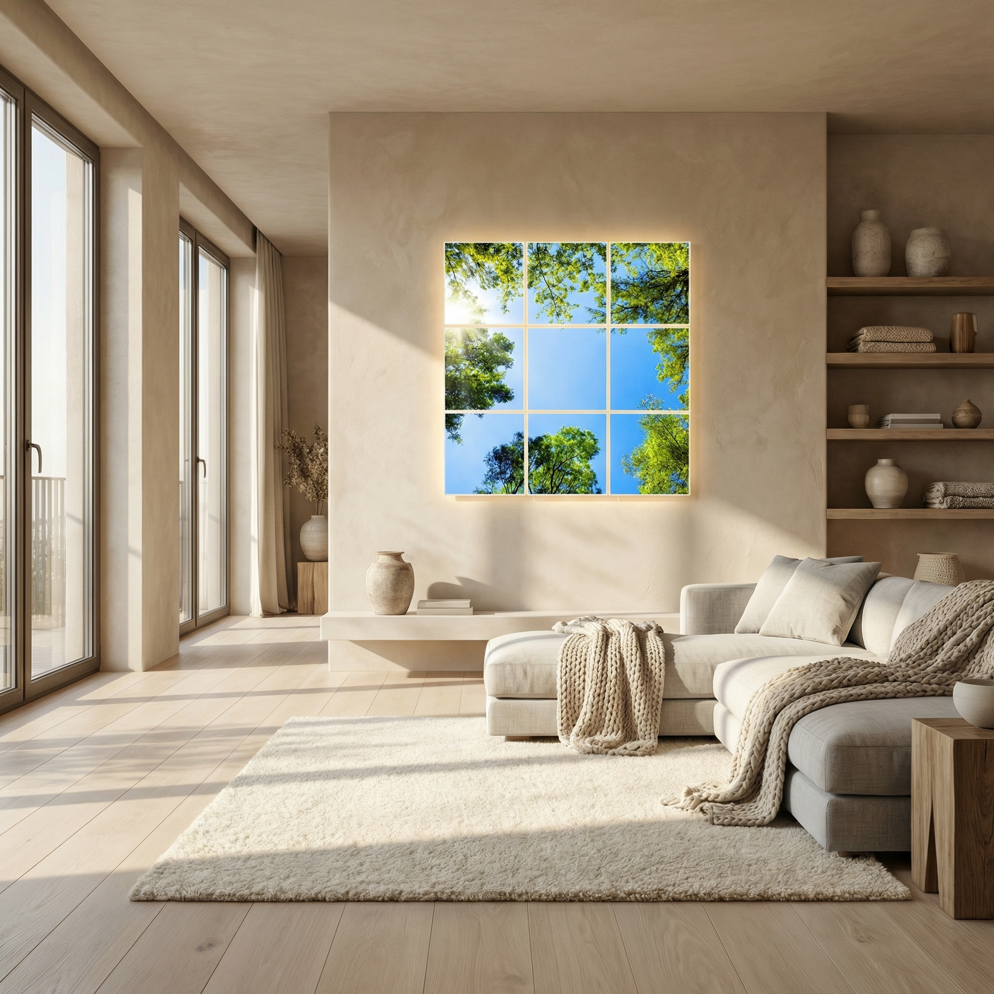 Apportez une touche de nature et de liberté à votre intérieur avec ces dalles LED imprimées. Son visuel représentant un ciel bleu lumineux à travers les feuillages d’arbres apporte une sensation d’ouverture et de bien-être. Idéale pour créer une ambiance apaisante et immersive, elle s’intègre parfaitement aux espaces de travail, salles d’attente ou intérieurs modernes. Impression haute qualité pour des couleurs éclatantes et un rendu ultra-réaliste.
