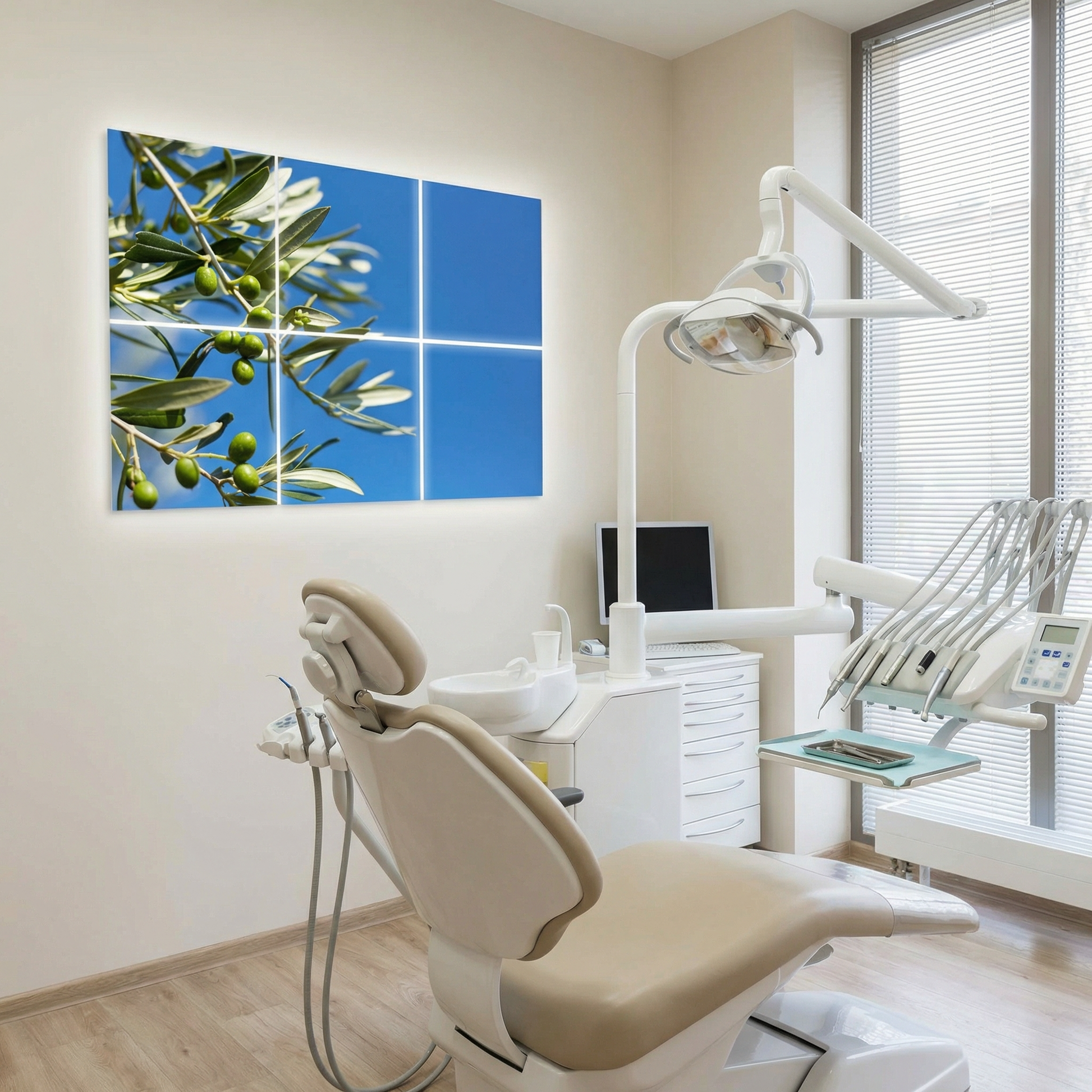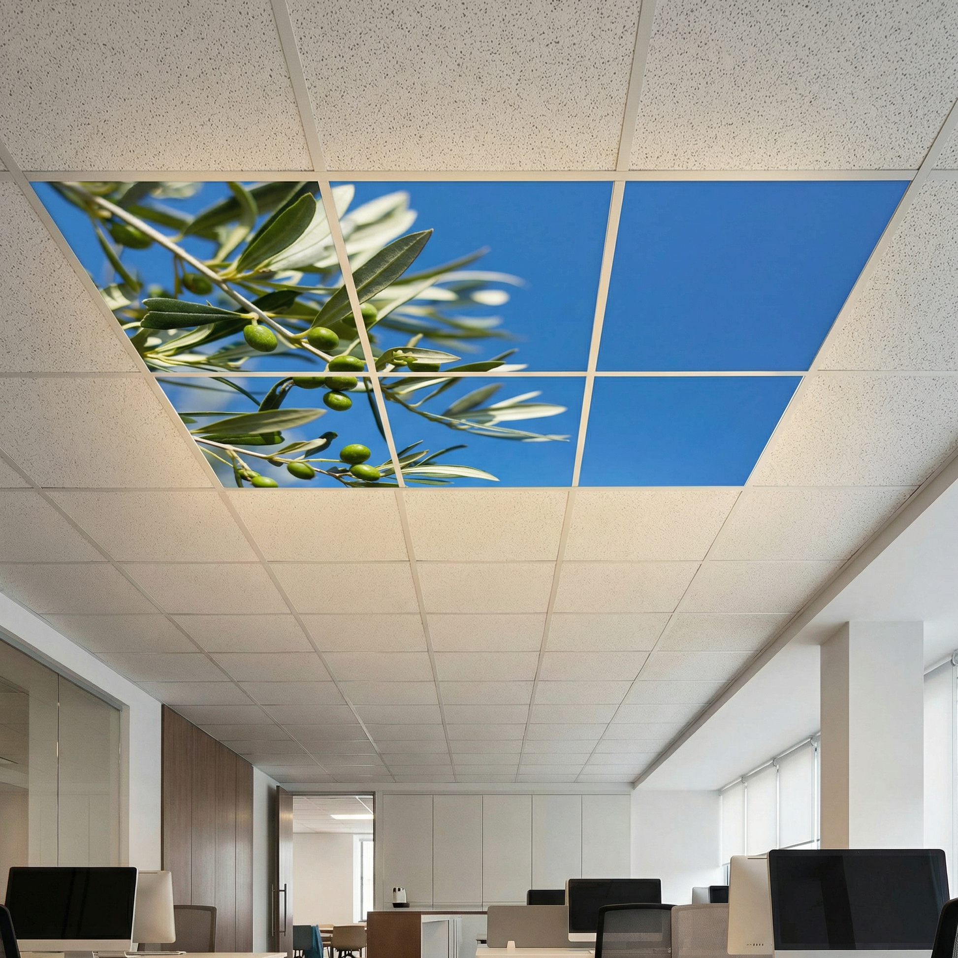 Pack 6 Dalles LED 60x60cm - Plafond Visuel - Éclairage en Trompe-l'œil - "Parfum d'Oliviers"