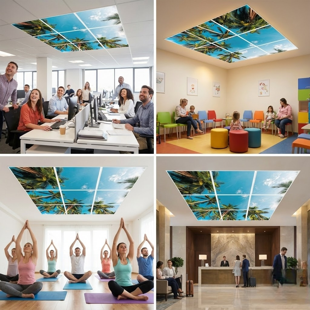 Pack 9 Dalles LED 60x60cm - Verrière Intégrale - Éclairage en Trompe-l'œil - "Évasion Tropicale"