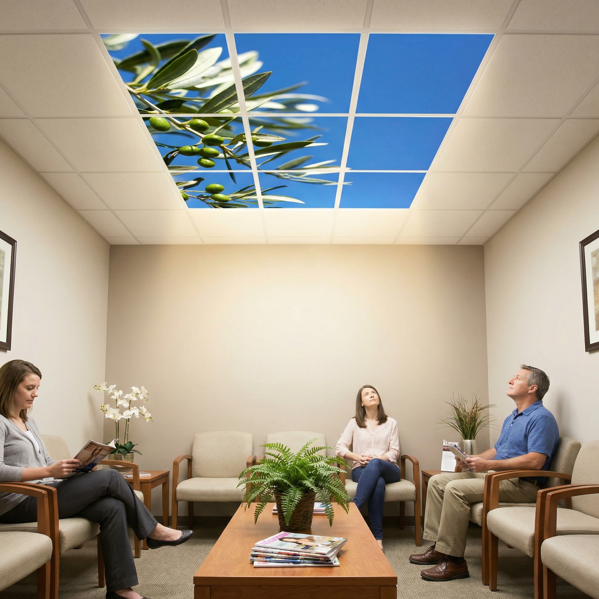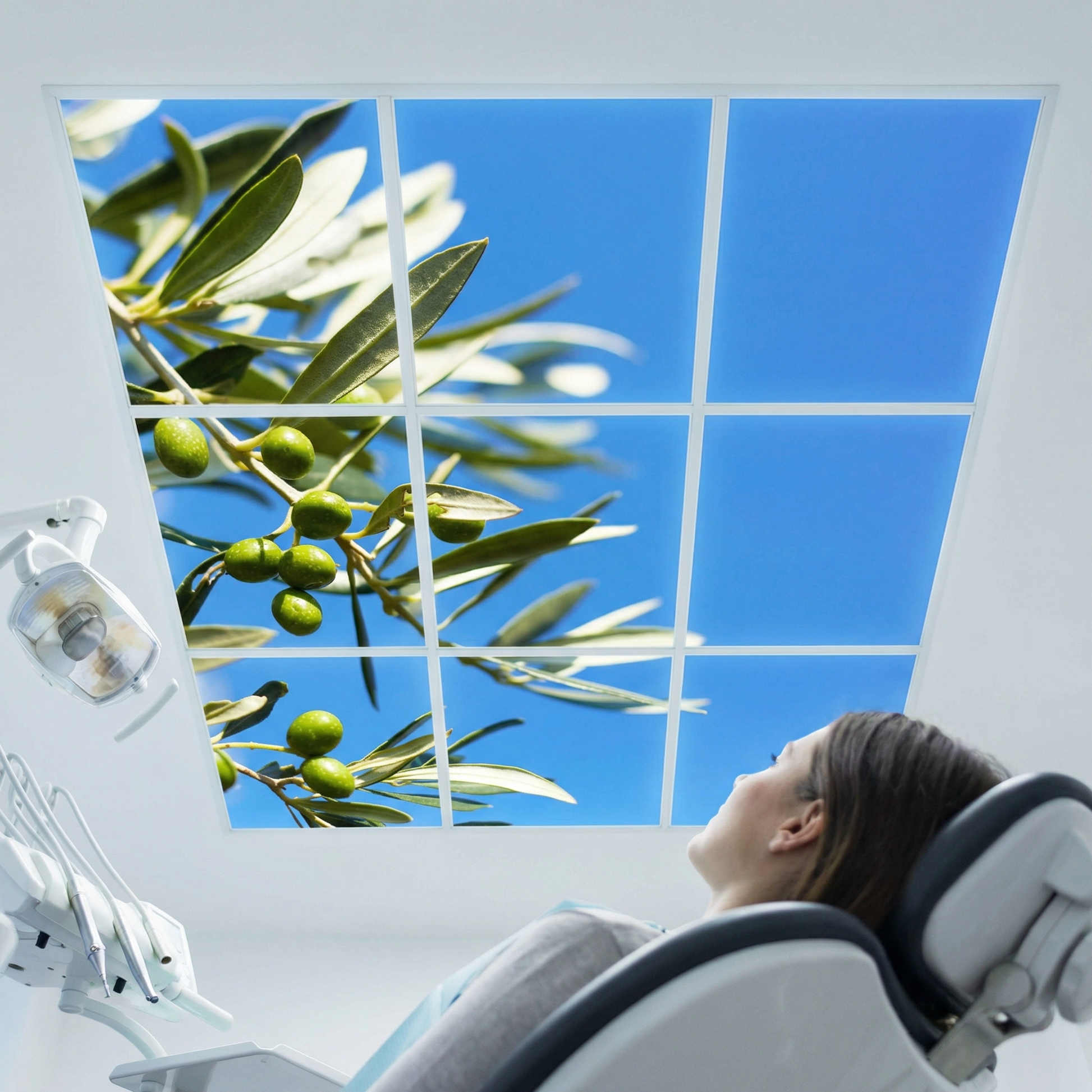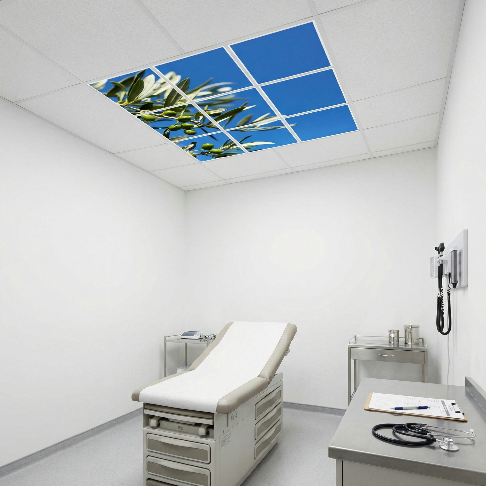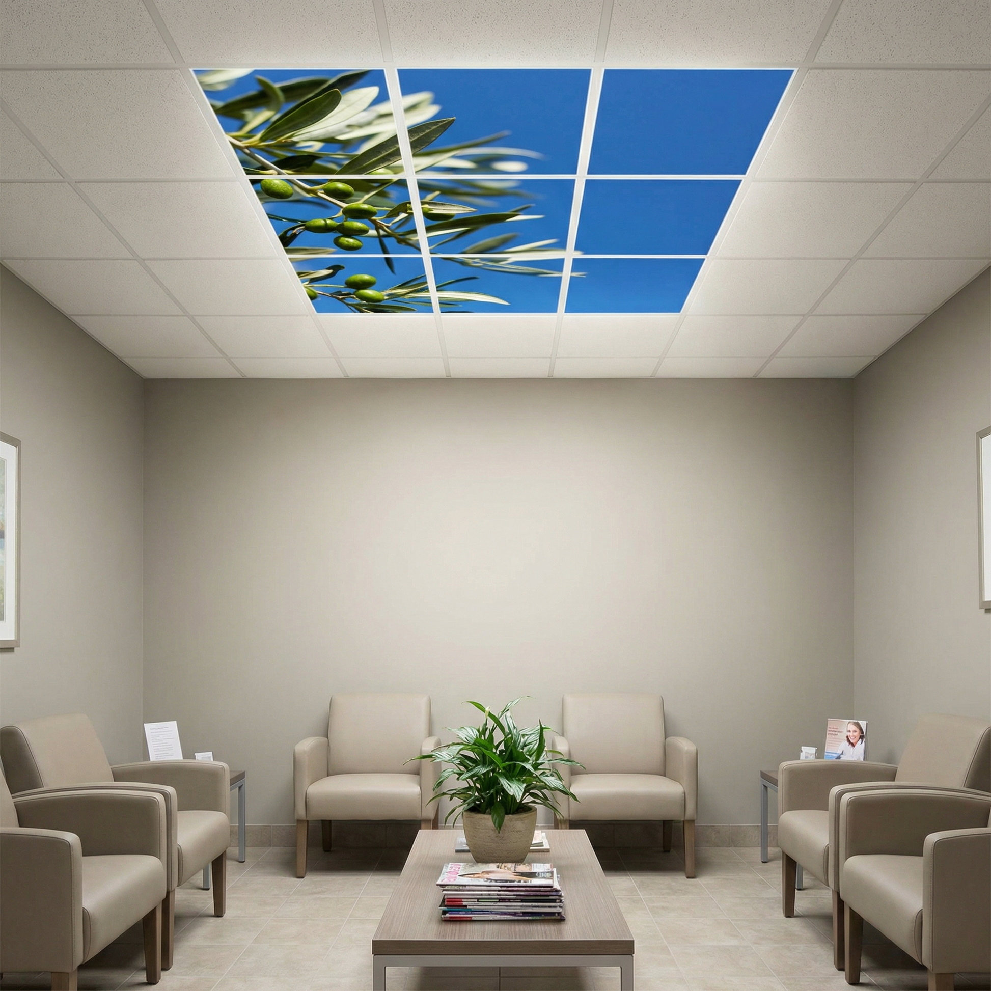 Pack 9 Dalles LED 60x60cm - Verrière Intégrale - Éclairage en Trompe-l'œil - "Parfum d'Oliviers"